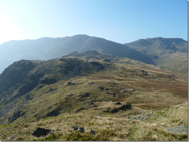 Esk Pike to the left & my first view of Loft Crag to the right of the grassy path. |