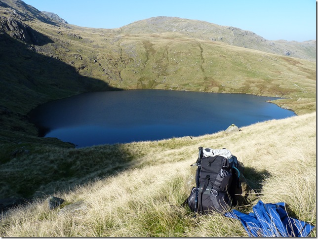 Rossett Pike Summit with Pike O’Stickle in the background, have I really come that far! Its time for lunch & a much long awaited view of Angle Tarn. |