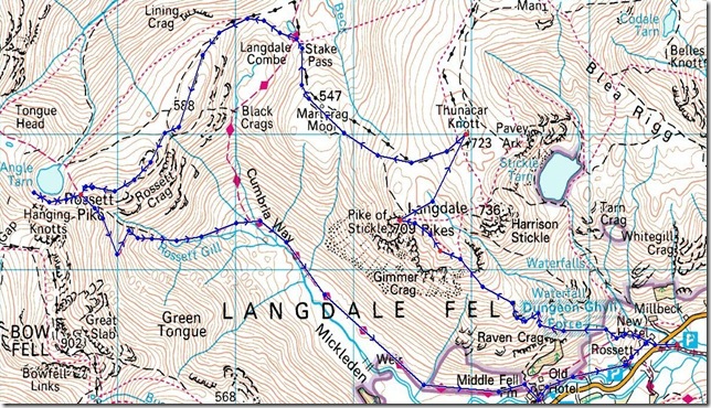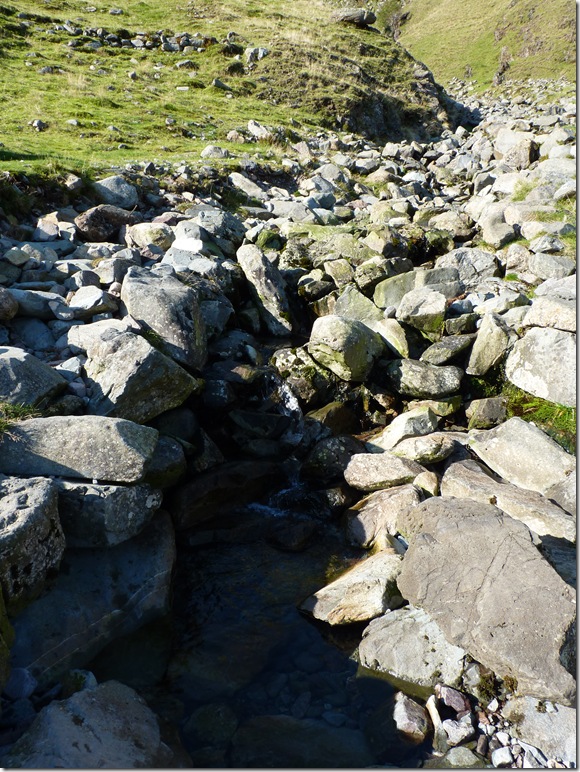 I think my H2o pack had a kink in it because for the last hour or so I’m sucking like a mad man & getting only a trickle through, so as I crossed Rossett Gill I cupped my hand & took a couple of handfuls & not to mention a splash over the face & hair. |