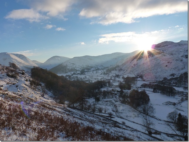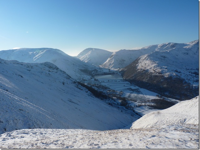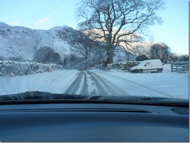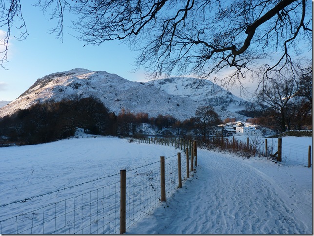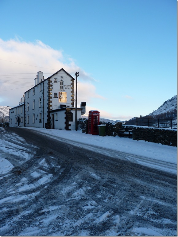 So going back to my route from Hartsop was a bit tricky to say the least, not my route I might add,but the road conditions, driving along the Ullswater Road (A592) had had a recent dusting of snow the previous night It was probably a couple of inches thick but enough to obscure driving conditions, the cheeks’ were definitely getting a bit twitchy as the car struggled & swayed up minor hills & all of the road that was visible was the centre broken white lines. I made it in to Glenridding thinking ‘Paul’ you may have to turn round & head home, next came Patterdale & the road just got worse, a 4X4 Police car lights blazing overtook me & that was when I decided I couldn’t go any further, I might make it down the hills in the snow but a return up them I had no chance & the Kirkstone Pass wasn’t even an option to drive home after the walk, I found a suitable space & turned the car around & headed back in the direction of Patterdale.