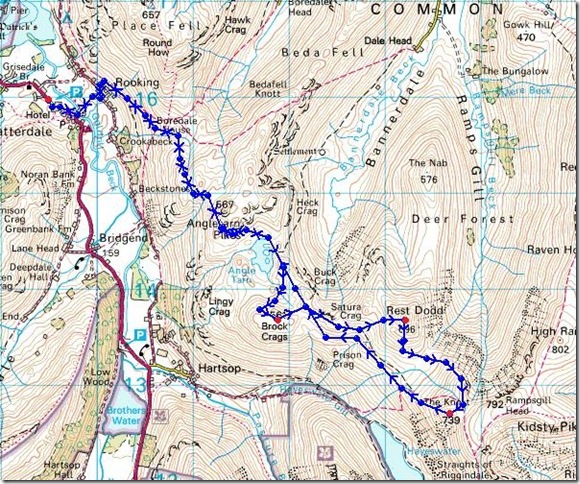 My original plan for this walk was to tackle Brock Crags from Hartsop, then Rest Dodd then go on to summit The Nabb flanking Rest Dodd to summit on the return then finally summit The Knott, I don’t know who’s boots I was wearing when I planned this route but I think I certainly under estimated the route in between Rest Dodd & The Nabb really is a tough section & to be honest I don’t think today I had the energy nor the time in fact I’m certain on the latter.