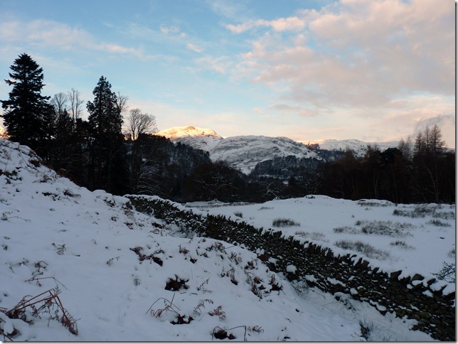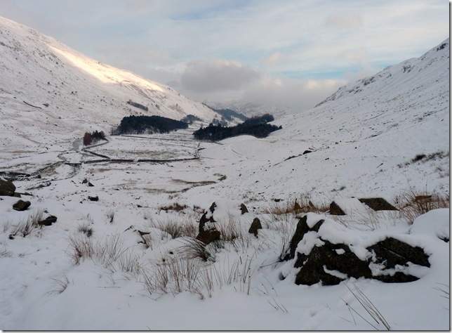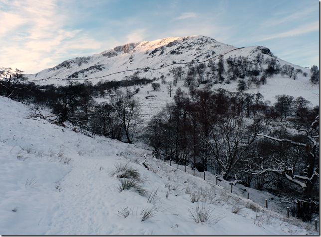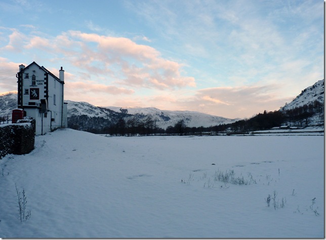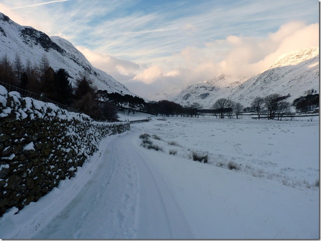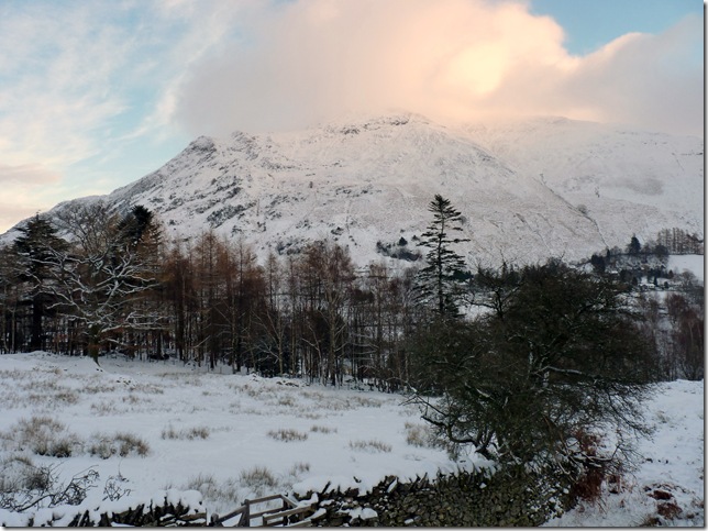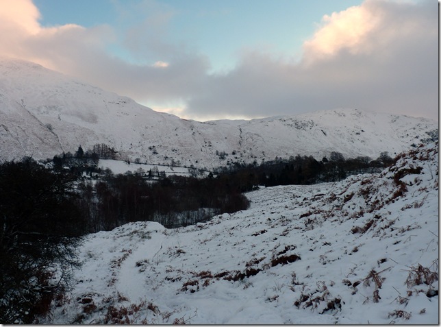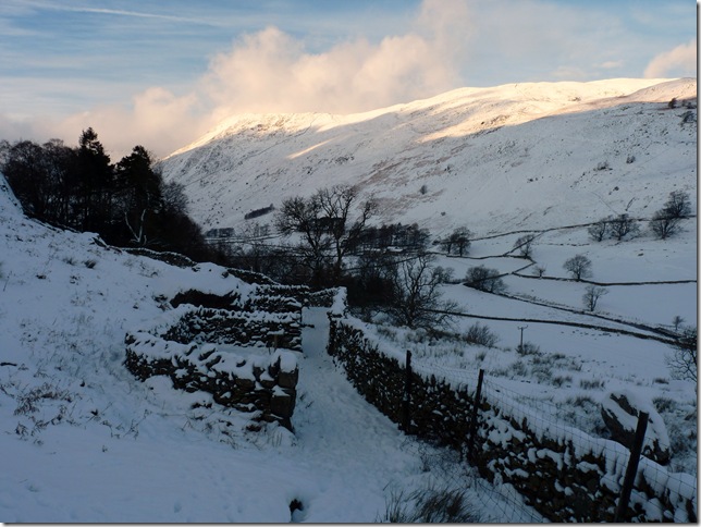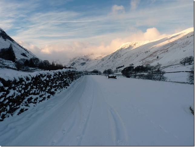 I knew today was going to be cold, its something I have become accustomed to but today was especially cold, a bone chilling –13°as I left for Grisedale from Patterdale, the temperature did rise to a tropical -6° which again I am accustomed too. The first hour of the walk into the Grisedale Valley I was met by what looked like promising blue skies, the sun shone on the fells lighting their snow covered summits with an orange afterglow, this walk I said to myself has reminiscent of last weekend, great views, blue skies & snow covered fells.
