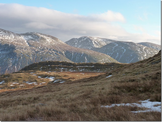 LtoR Dollywagon Pike, Seat Sandal & Fairfiled & Cova Pike, hidden in between the col is Grisdale Tarn. |