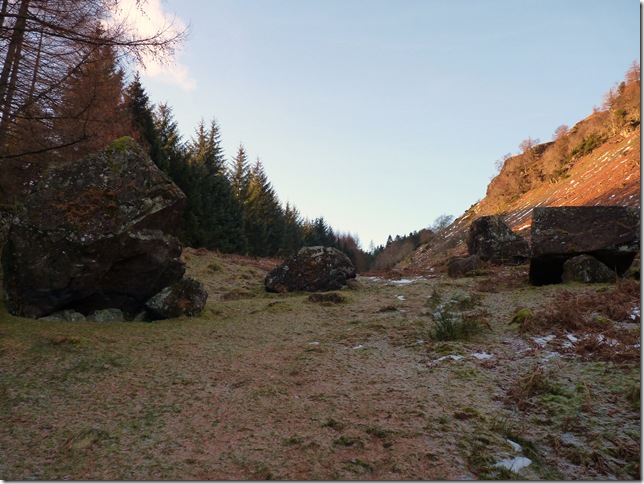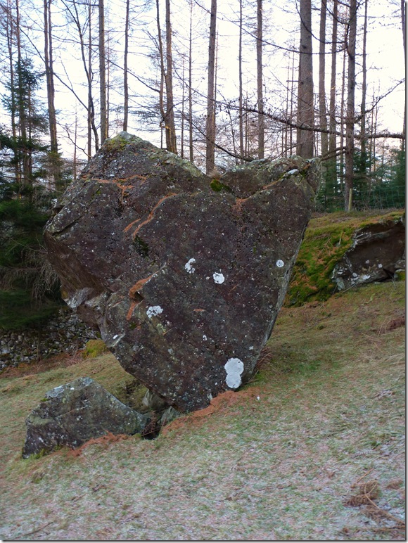 The path flanks the Fishercrag Plantation not before passing these huge boulders. |