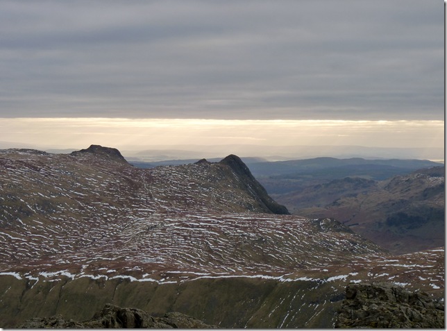 Dramatic skyline as we look over to Harrison Stickle & Pike O’Stickle from Looking Steades. |