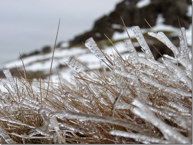 Due to the ice sections of the path it was impossible to follow so little diversions were needed, the ice was thick & compact, and thoughts were a little worrying as to what to expect as we gained even more height. |