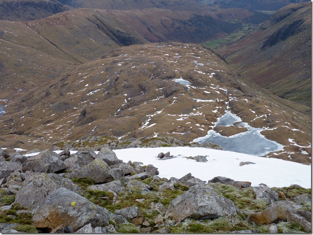 Sprinkling Tarn & Seathwaite Fell leading into Borrowdale from the summit of Great End. |