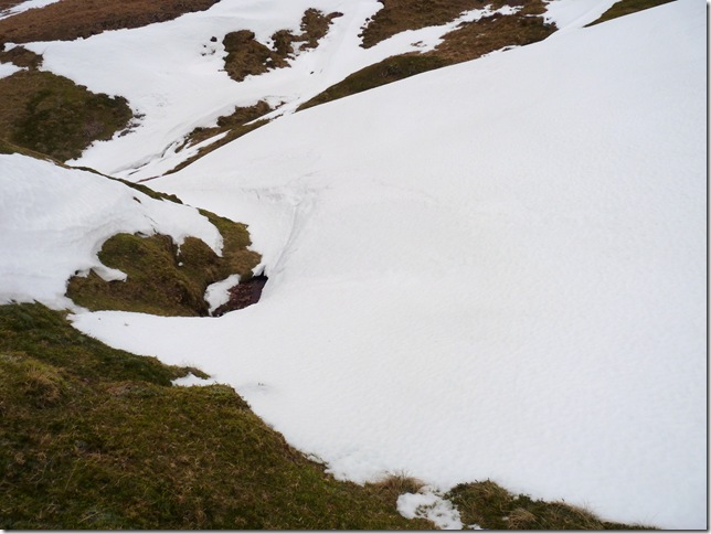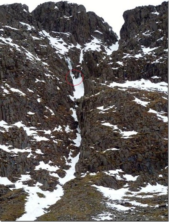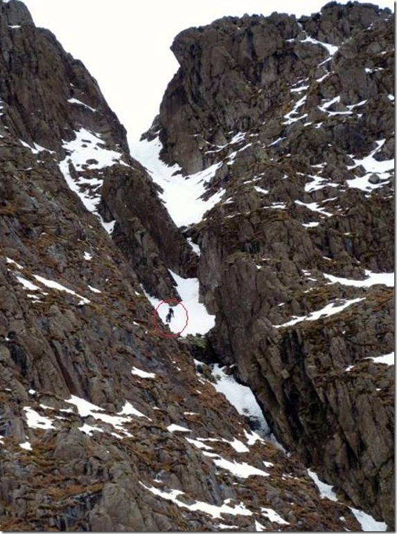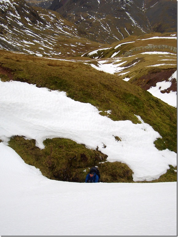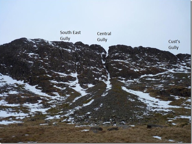 took a slight de-tour from the summit to have a look at Central Gully, this South Facing gully runs 300 Metres spine like from Sprinkling Tarn all the way to the summit |