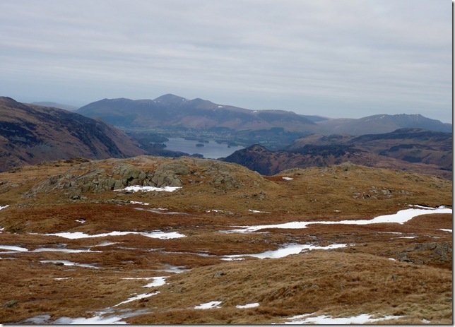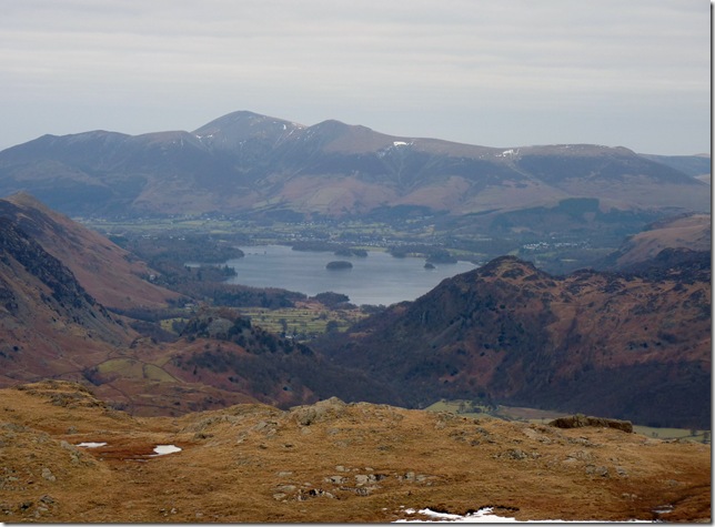 Dewent Water, Skiddaw & far right Blencathra from Comb Head. |