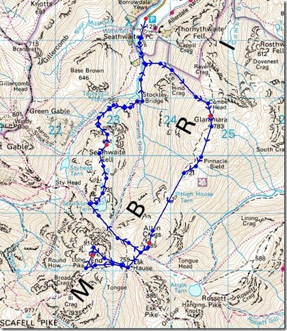 The huge mass of Base Brown from our scramble up towards Comb Head & Glaramara. |