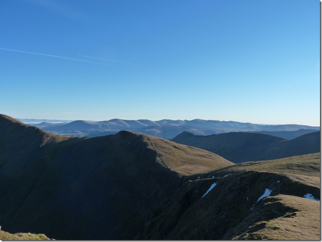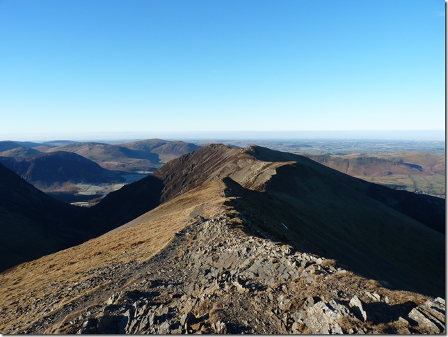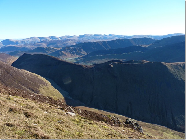Hobcarton Crag, Causey Pike, The Dodds & the Helvellyn Range from Hopegill Head summit, next its a steep descent down to Ladyside Pike. |