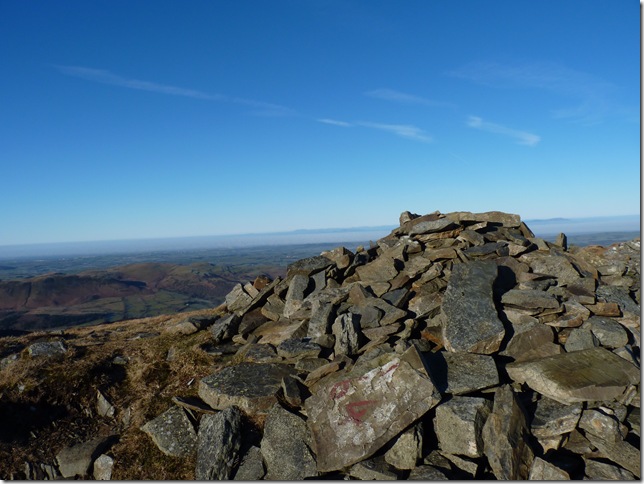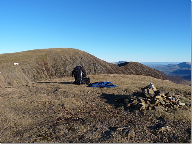 Wandope summit cairn with Crag Hill & Scar Crags in the background, also its time to layer down, here I take my fleece & jacket off & do the rest of the walk in just my mid layer, it really does feel like a summers day |