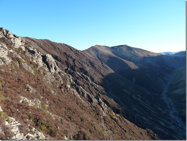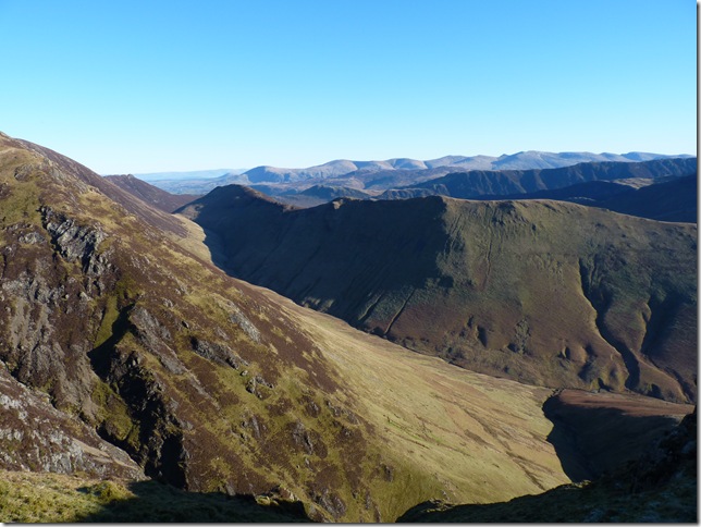 After reaching the summit of Whin Ben you get this wonderful view of the ridge ahead, here we have to the left, Gasgale Crags with Hopegill Head & Sandhill taking centre, to lower right is Gasgail Gill leading to the head of the valley & Coledale Hause. |
