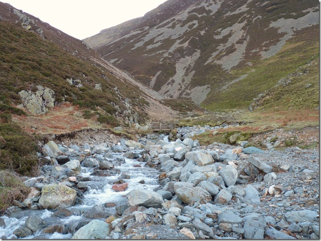 Using the wooded bridge to cross Liza beck, right about now I’m getting a cold gust of air coming down between the two valleys. |