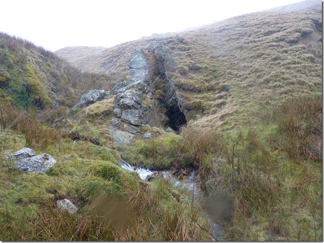 I’d just made my way down this steep section of grass flanking Drygill Beck when I stumbled upon this old mine shaft, by the way as you can see it started snowing again & all thoughts of ‘should I make my way back up the workings & carry on the walk’ quickly disbanded. |