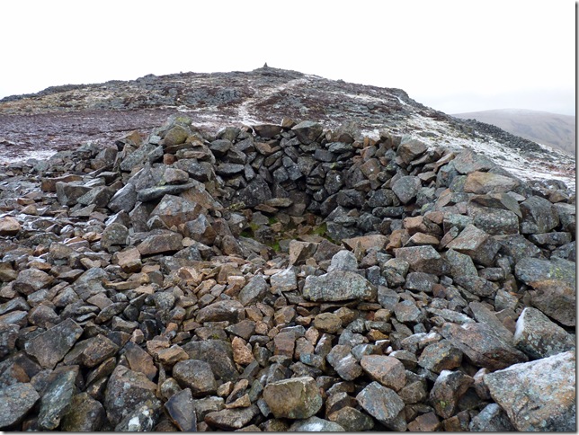 Carrock Fell summit cairn & shelter. |