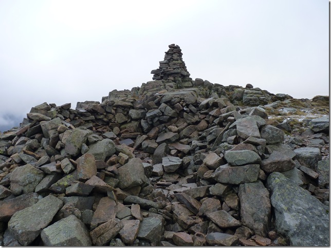 Miton Hill summit cairn, the path from Carrock Pike to here was well trodden & very boggy, In the end I gave up trying to find routes around the bogs I found it more fun just to trench through, I was lucky & escaped with only one slightly wet boot. |