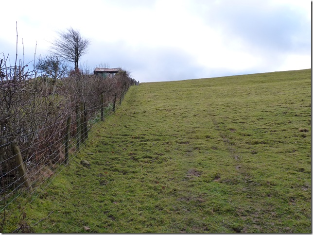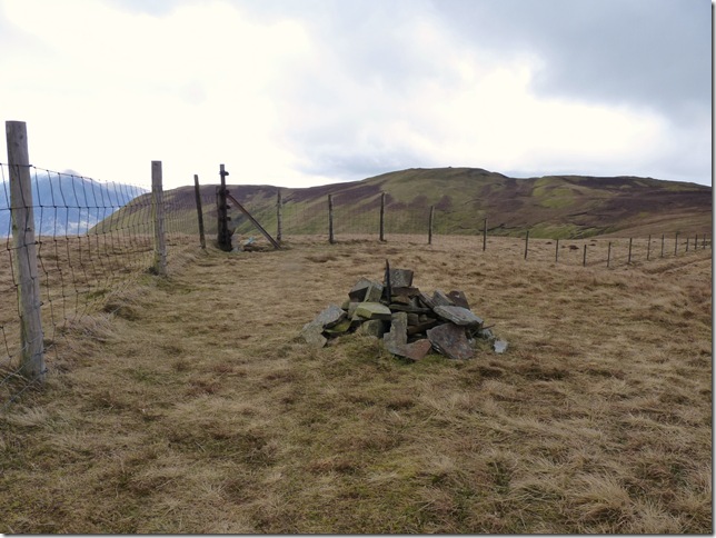 The path veered right still following the fence line but here I jump over the fence & detour right again, I can just pick up the faint path that will lead me Gavel Fell bound. |