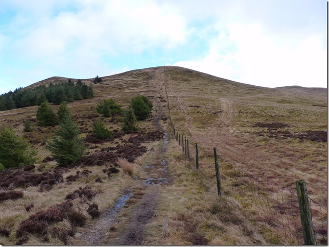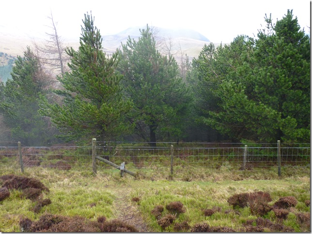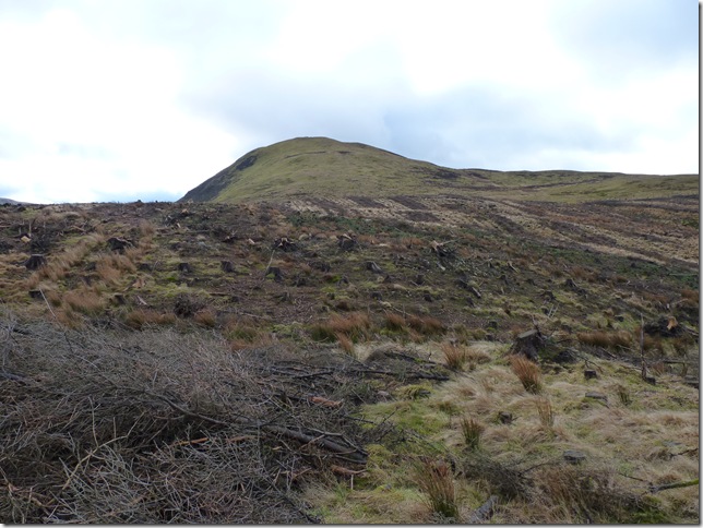 Knock Murton ahead, my path takes me around to the right avoiding this sad sight of fenced off felled pines. |