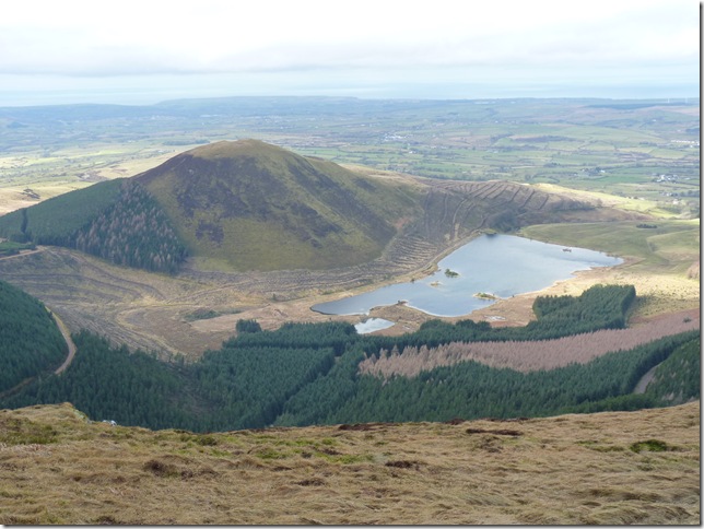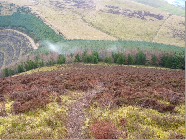 My route down back to Cogra Moss. I’m heading for the gap in between the forest on the left & the small wooded area on the right, its a gentle descent to start with but as I head over the crest the descent gets a whole lot steeper. |