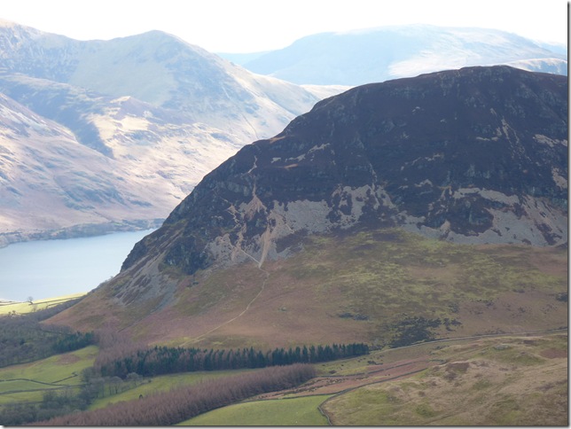 A close up of Mellbreak’s steep approach paths from the Loweswater end. |