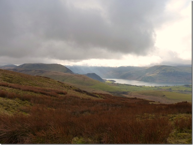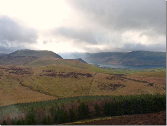 The skies are starting to clear just nicely, views towards my next fell to the left Blake Fell & maybe a trip to Carling Knott, right. |