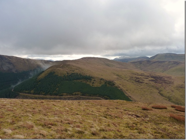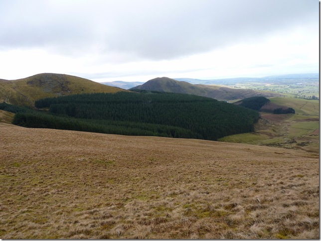 Looking back at the steep wooded area I had just passed through, Knock Murton & Cogra Moss. |
