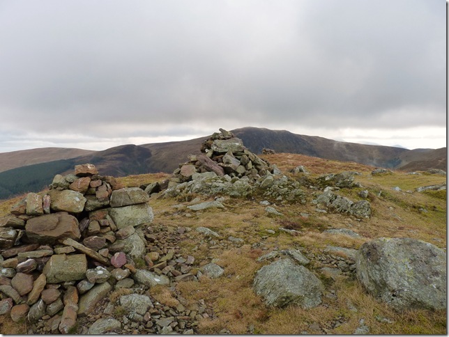 Burnbank summit cairn with Carling Knott in the back ground. |