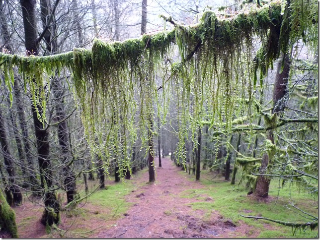 The steep ascent didn’t stop as I walked or as I would put it slipped & skidded all my way down the path, the wet pine needles were just horrible to try & control any grip underfoot.