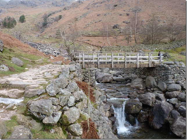 Crossing Stickle Ghyll, the day had started some what hazy & views towards Tarn Crag were obscured by low lying cloud. |