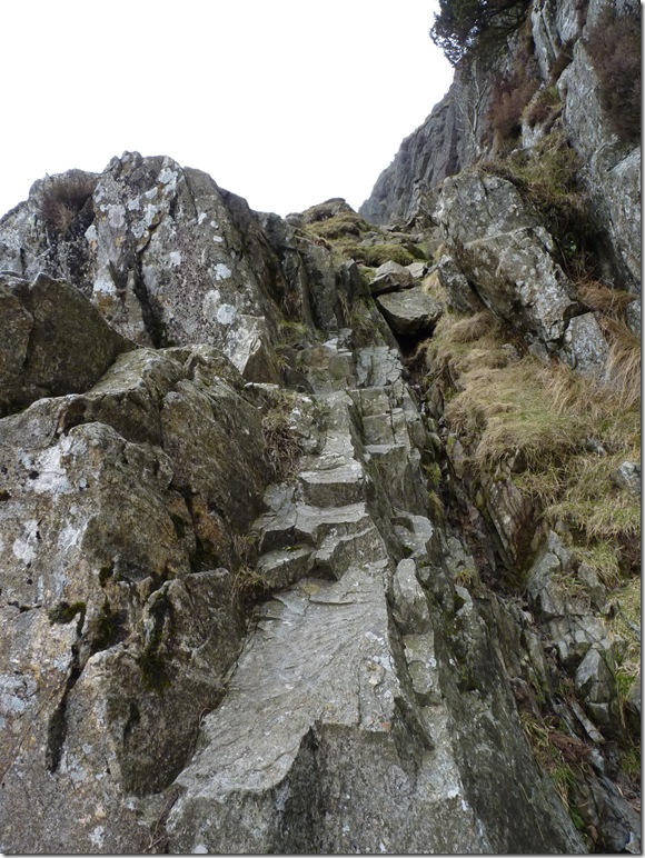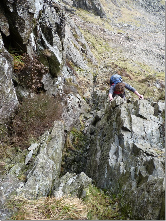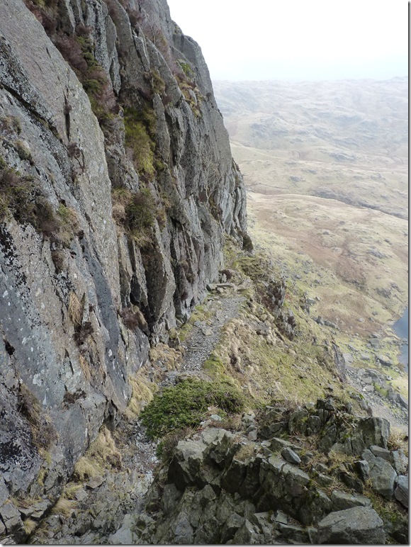 The most exposed point along the route ‘Great Gully’ the path here is extremely narrow & great care was taken, a fall here would be fatal. |