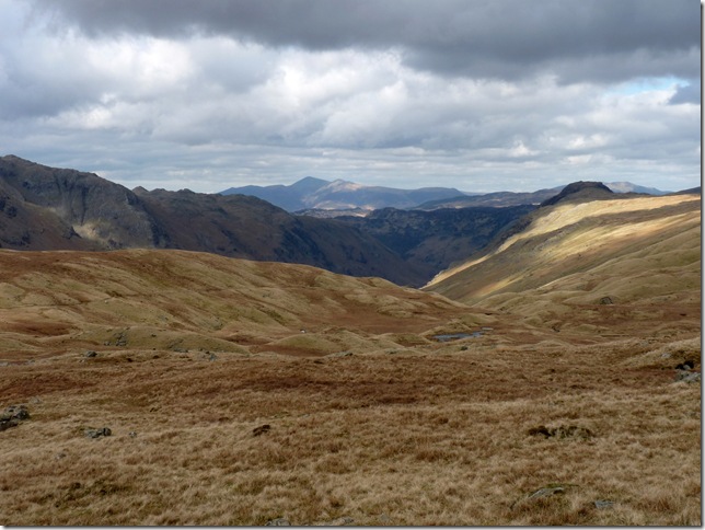 Esk Hause & Bow Fell left & The Langdales Right.