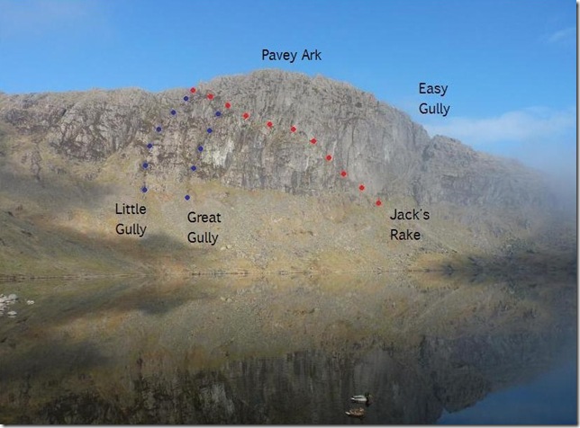 Jack’s Rake Or Jake’s Rake as it is most commonly miss spelt( me being the latter!) has been a nail biter for as long as I can remember, since the first time I climbed Pavey Ark via the North Rake and then onto Harrison Stickle way back in February 09. Back then In my youthful days of a novice fell walker this grade one listed climb was well beyond my reach. The time spent on Pavey Ark’s summit that morning I was met by two lads in actual fact from the same town as I ( Wigan) who had just scaled Jack’s Rake, one who looked as white as a ghost shaking slightly bumming cigarettes of fellow walkers. I asked his fellow mate ‘where have you come from?’ Oh we’ve just come up from Stickle Tarn via the Rake, I looked over at his mate now puffing like a steam train on the bummed cigarette ‘what was it like’ I asked? well, put it this way I stopped smoking two years ago & now I cant stop shaking. I put this down to sheer adrenalin & not fear.