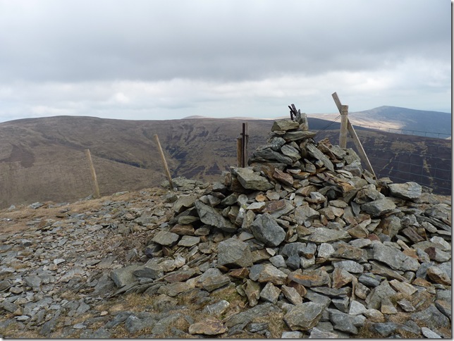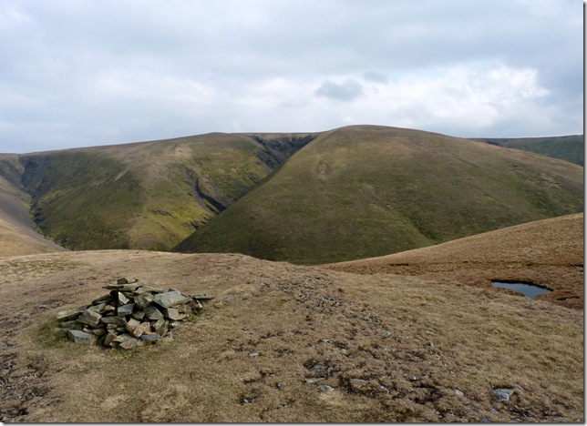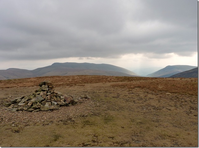 Knott summit cairn with views towards Bannerdale in the background. |