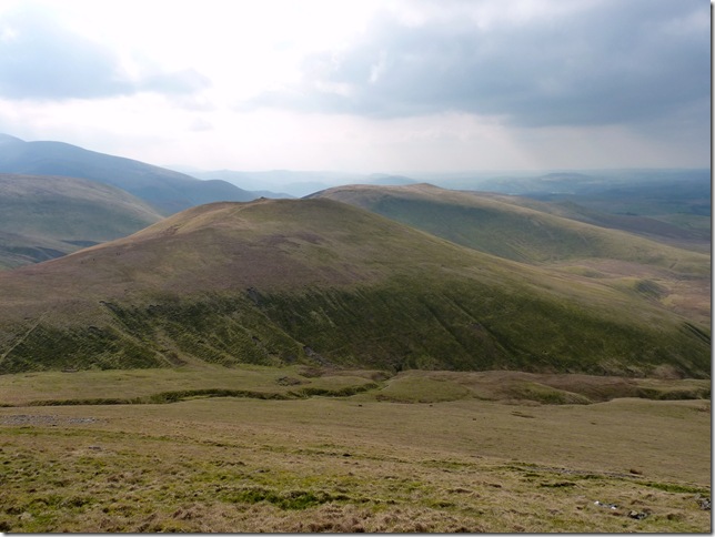 Looking back on Great Calva distinctive triangular shape from the ascent of Knott. |