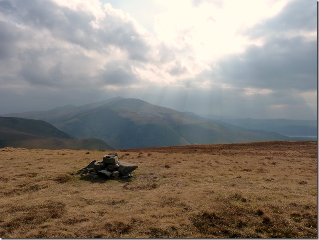 Beautiful rays of sunshine over Great Cockup summit with Bakestall & Skiddaw’s massif forming the background. |