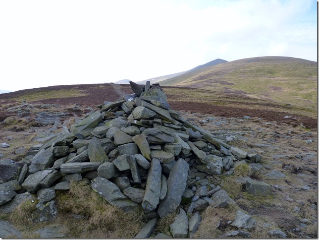 Bakestall summit cairn, with Skiddaw’s summit to the right of the cairn & to the left is Skiddaw Lower Man.