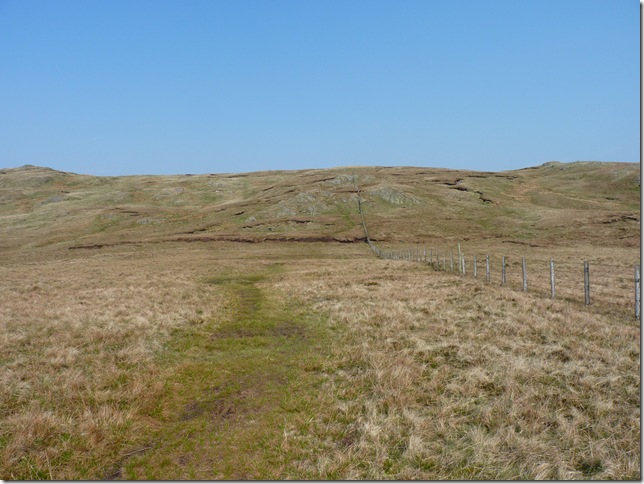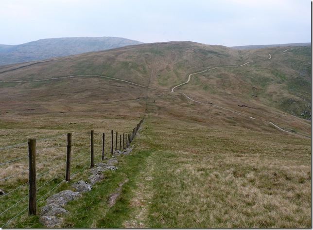 Following the fence line all the way down to Gatescarth Pass, ahead here would take you on to the summit path of Harter Fell (Mardale) Right is the short walk back to Mardale Head, left along the pass it was for me & a 1.8 mile walk back to Longsleddale. |