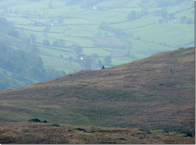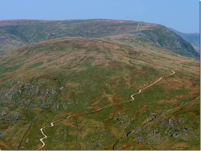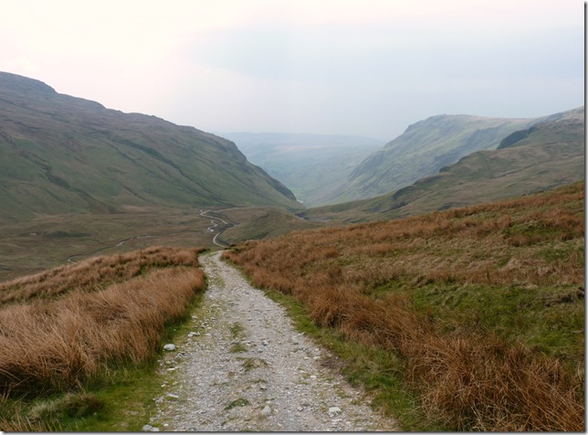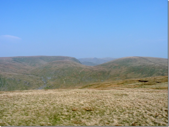 The Gatescarth Pass winding its way through the valley head of Longsleddale, To the left is the southern flanks of Harter Fell (Mardale) & to the right my next destination Branstree, but before I head for its slopes there’s quite a bit of descent & ascent. |