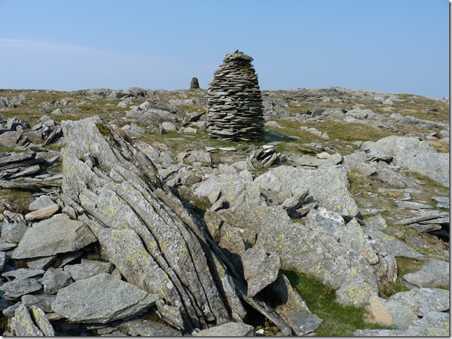 Looking west from Artle Crag Pike at the two large cairns. |