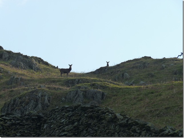 Now using the cameras zoom to look south & back on Great How, the two pillars (four altogether) mark the whereabouts of the water pipeline 1,300 feet below Tarn Crags & Grey Crag.