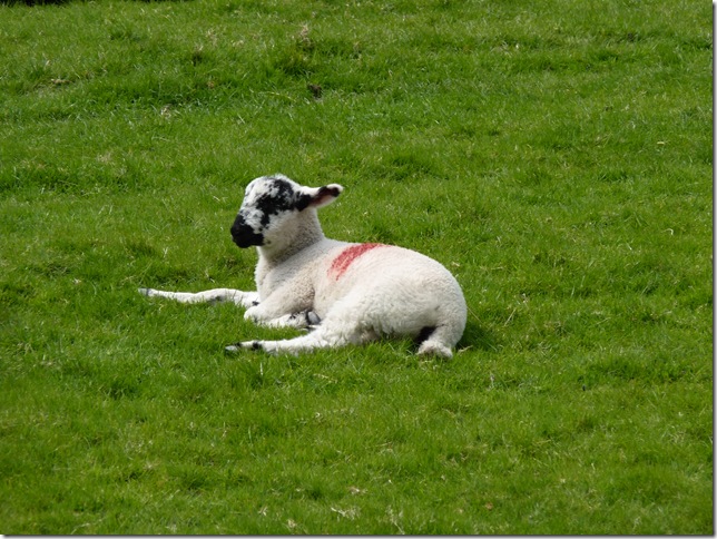 Goat Scar from the path, with the wind still blowing a hooley I had to protect my eyes from the dust being blown up from the path, I glanced at the sheep in the fields wondering how they manage to stay upright when such a gale is bearing down on them.. |