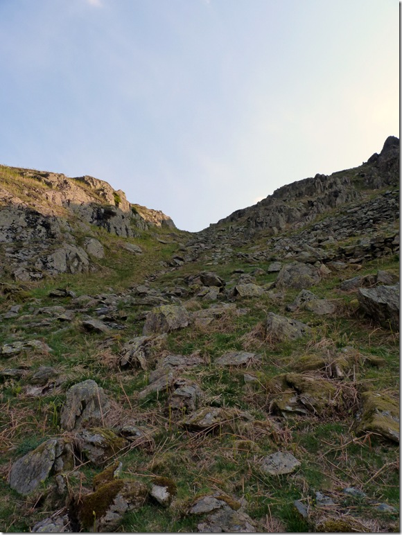 Pardon the pun, but the easiest way on to Great How & Grey Crag is via Easy Gully, its not as steep as it looks in the picture. |