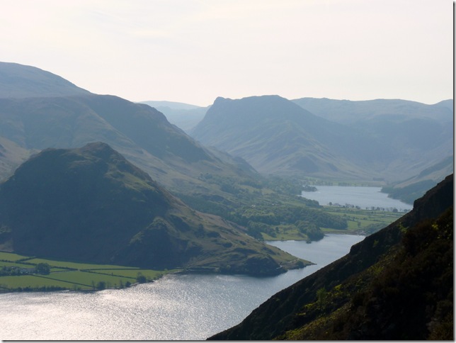 Views over Crummock Water & Rannerdale Knotts with Whiteless Pike & Wandope in the background, the ridge on the very far skyline is the Helvellyn Range & The Dodds. |