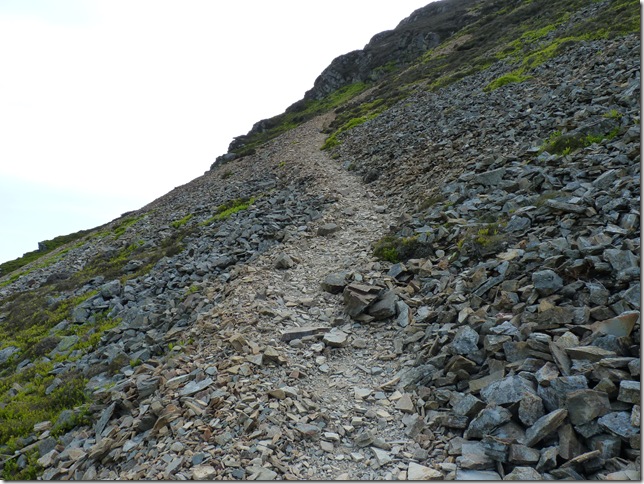 Leaving the steep grassy slopes behind & now on the scree section, despite the approach from the north (Loweswater end) I had in mind some back breaking ascent, the path here is steep but more than manageable which in turn winds its way through its crags just perfectly. |