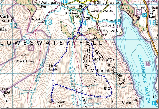 Making my way from Little Dodd, it was here I jumped over the fence & made my way down to Mosedale Beck for the second time today. |