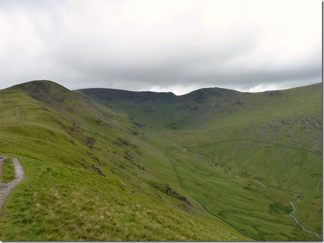 The plush green valley of Scandale & Scandale Head, the prominent peak at the head of the valley is Little Hartsop Dodd. |