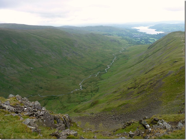Looking back & down into the valley of Greendale with Rydal Beck snaking its way along the valley floor, as ever on this walk most of the views looking south are dominated by the vast presence of England’s longest lake, Windermere.