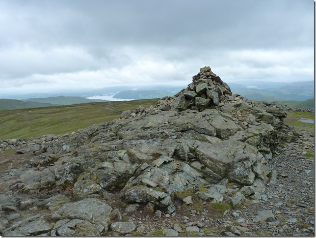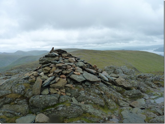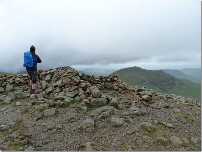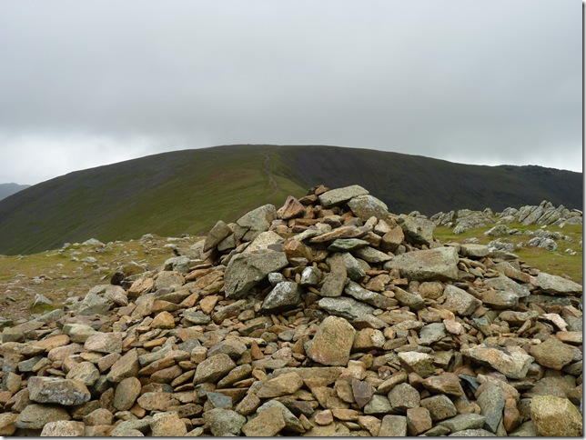 Fairfield from the summit cairn of Great Rigg , things are looking up for a cloud free ascent on Fairfield, the gusts are incredibly high & theres not much we can do about except soldier on. |