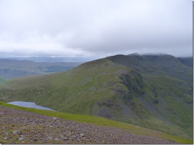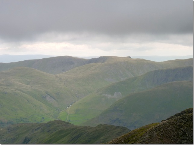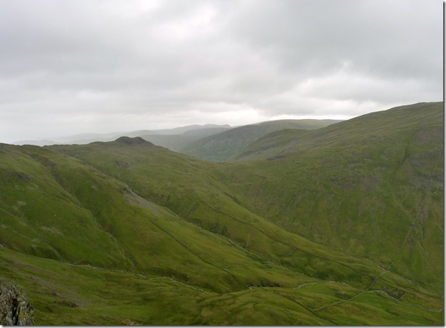 Views back up towards High Pike & Scandale from the summit of Low Pike, from here on in we knew the rain was coming, we smelt it, we felt it pelt our jackets, we had been blessed with 7 summits cloud & rain free but now it was our turn to take a soaking. |
